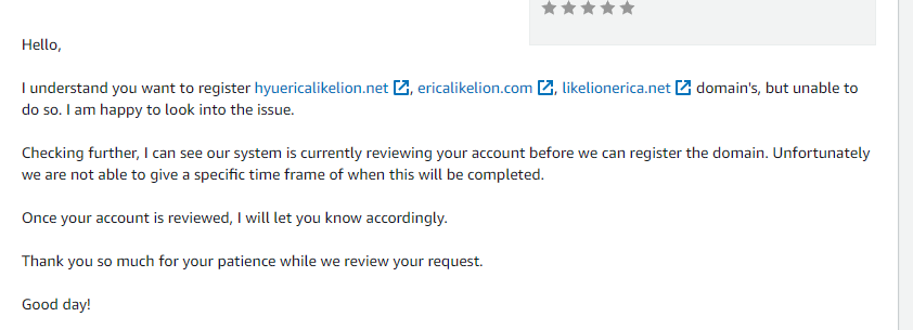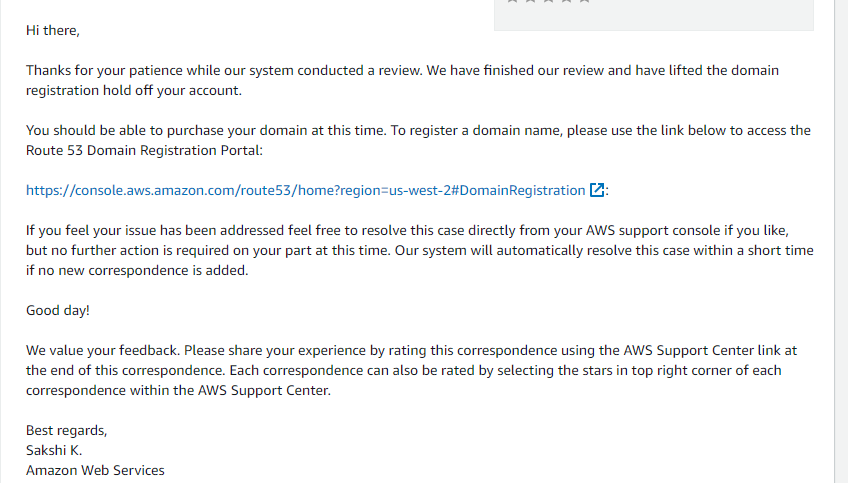 이후 서비스가 검토를 끝냈다는 소식을 다시 받게 되었고, 도메인을 정상적으로 구입할 수 있었다.