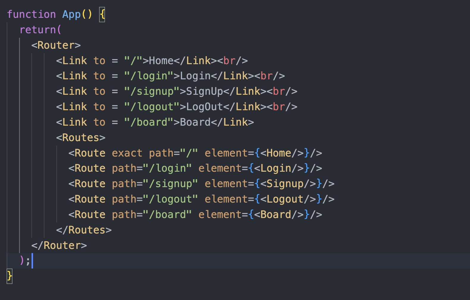 이전 코드의 <Router> 태그 아래쪽에 다음과 같이 코드를 추가해볼께요