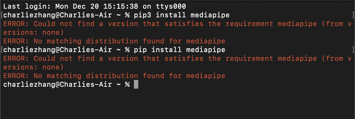 ERROR : Could not find a version that satisfies the requirement mediapipe (from versions: none)